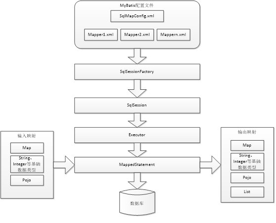 可以看到对于开发人员来说整个流程是这样的:开始–>获取SqlSessionFactory–>通过SqlSessionFactory打开一个SqlSession–>通过SqlSession与数据库进行交互–>结束流程。